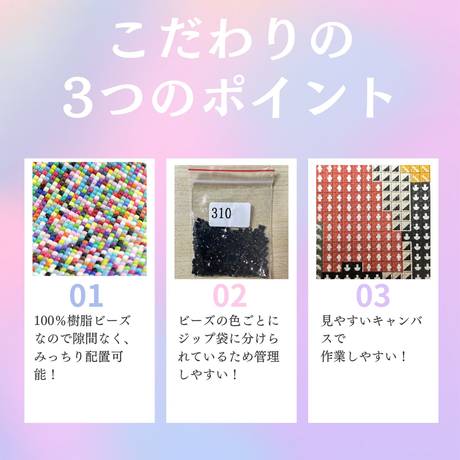 ★ビーズの大きさピッタリにマス目の大きさを設定しているため、隙間なくきれいに配置できます!